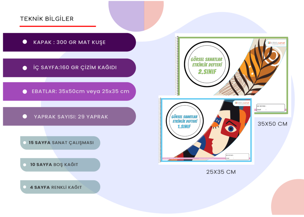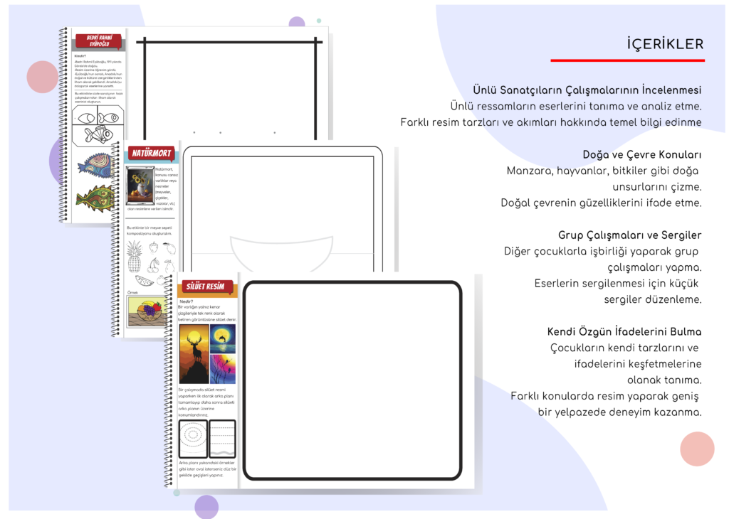Bu defter sanatın geniş dünyasında keşfe çıkmak isteyen her öğrenci için tasarlandı. Renkli yaratıcı ve eğlenceli etkinliklerle dolu bu defter sanatın derinliklerine inmek için bize rehberlik edecek.