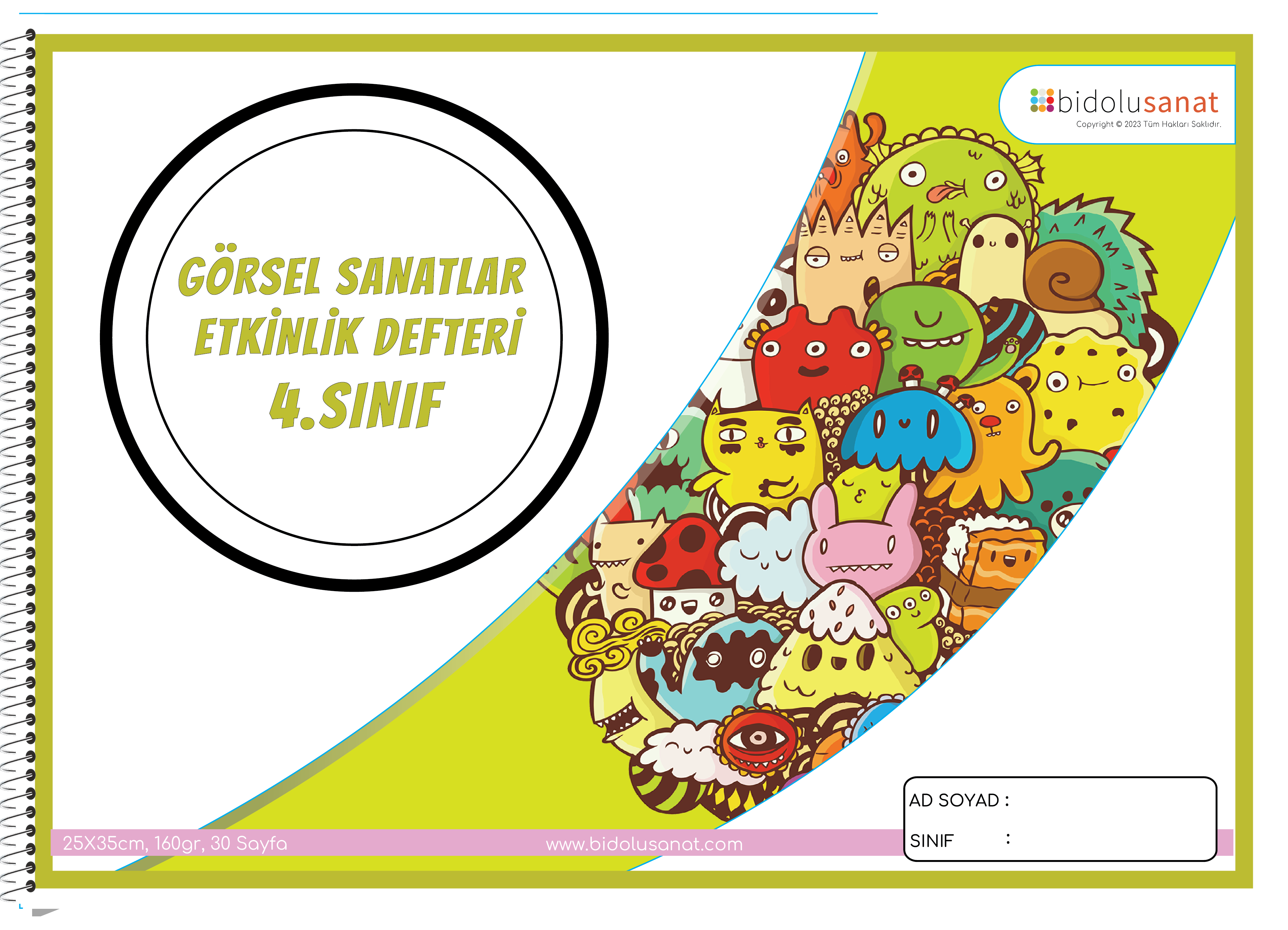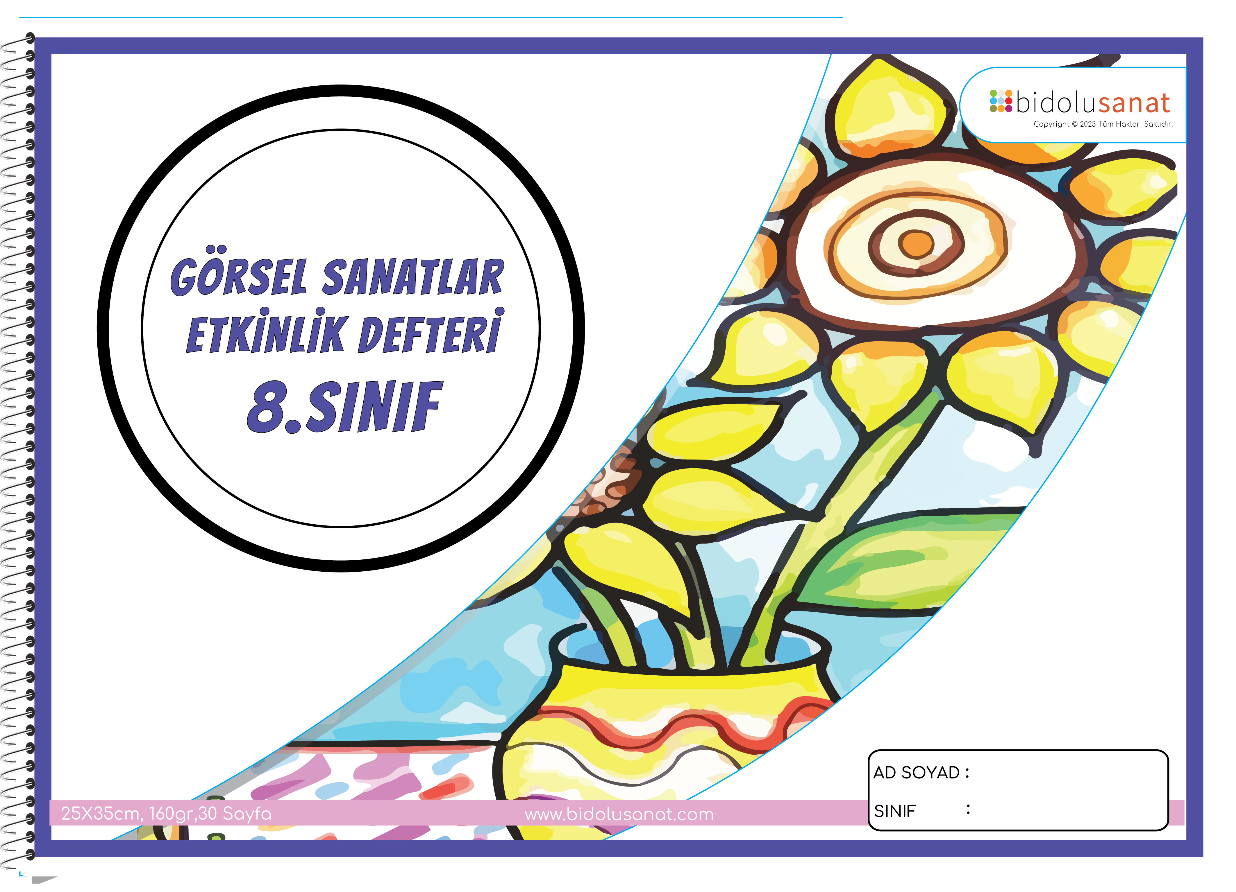Görsel sanatlar dersi için hazırlanmış bu defter öğrencilerin konuları işlerken daha anlaşılır ve eğlenceli hale getirmektedir. Etkinlikler temel sanat eğitiminden başlayarak resim türlerini, sanatçı ve sanat akımları konu anlatımlı sunumlarla aktarmaktadır.